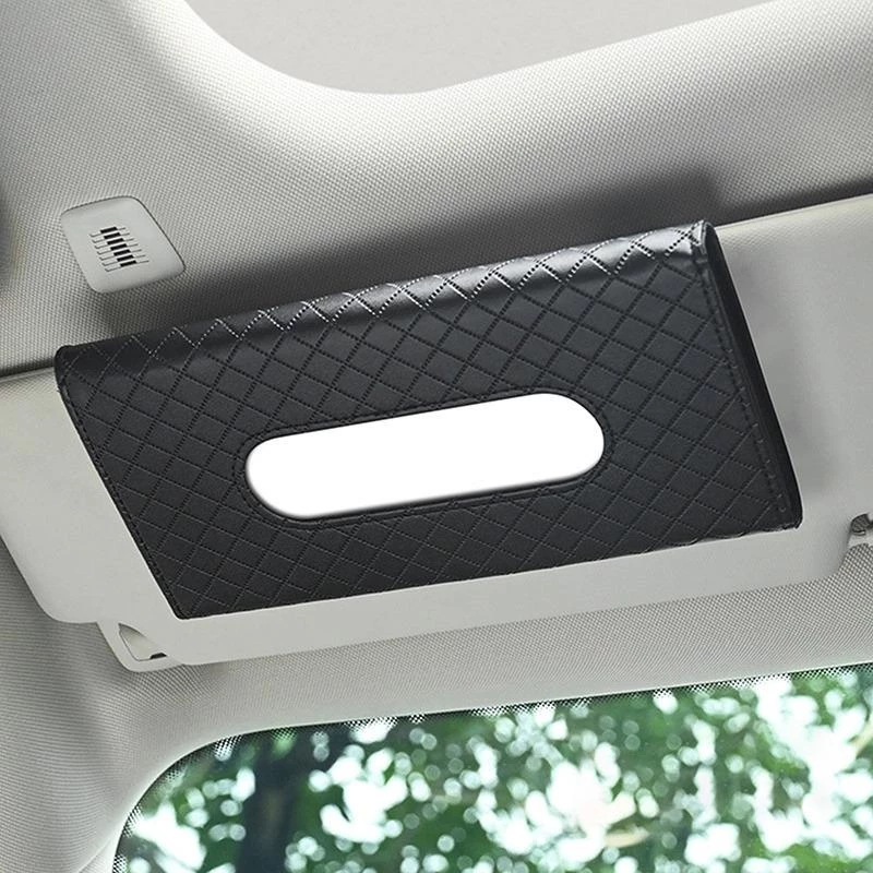กล่องทิชชู่สีดำ หนัง PU ที่บังแดดรถยนต์
